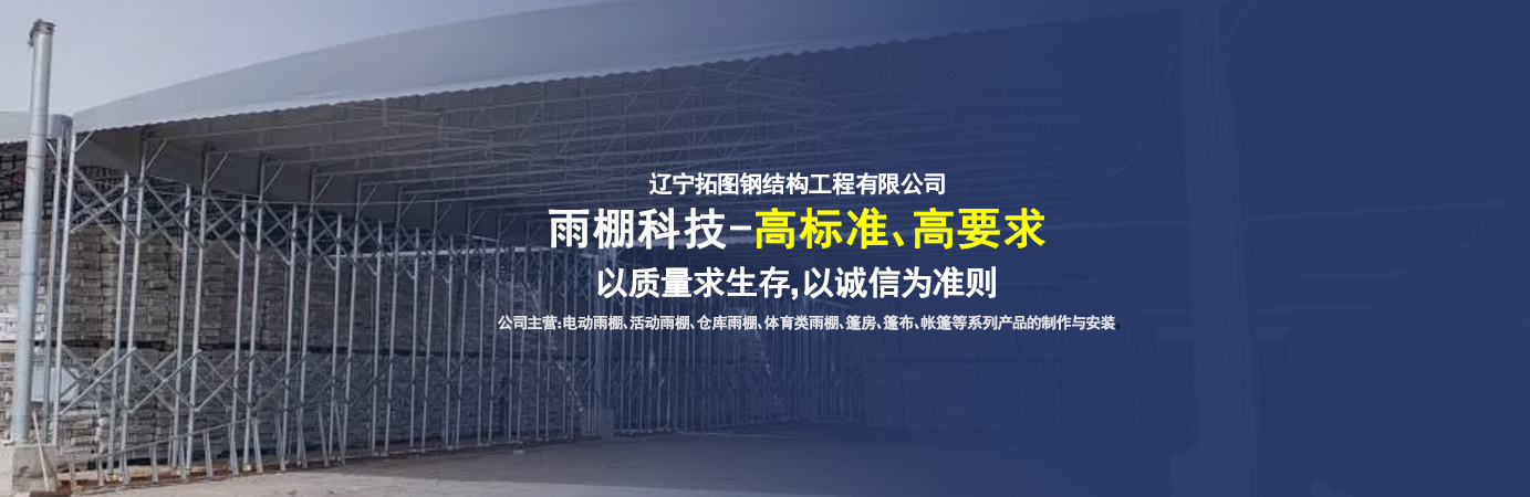 遼寧拓圖鋼結構工程有限公司是一家專業從事推拉篷設計、制作、安裝、使用、維修的綜合性公司。公司主營:電動雨棚、活動雨棚、倉庫雨棚、體育類雨棚、篷房、篷布、帳篷等系列產品的制作與安裝。 遼寧拓圖鋼結構工程有限公司堅持以市場為導向,以科技創新為動力,以質量求生存,以誠信為準則,倡導求實、進取、創新的企業精神。“科學的管理、嚴謹的設計、 的制作安裝、嚴格的質量檢測、良好的后期服務成就企業的信譽,為您提供優質服務。 遼寧拓圖鋼結構工程有限公司傾力于開發應用三維空間結構與新材料的結合,將廣告藝術視覺表現形式與張力膜材科學的結合,推出多彩推拉蓬,依靠先進的科學技術,將推拉蓬建筑表現形式無限延伸,立志走在建筑科學的前沿,引導建筑時尚潮流,我們的目標是使推拉蓬建筑在中國發展壯大。 遼寧拓圖鋼結構工程有限公司憑著極強的事業熱情和豐富的專業經驗以“勤勉進取、銳意創新、至誠至信”的精神使公司得到迅速健康發展,業務范圍遍及全國。科學的管理、嚴謹的設計、高標準的制作安裝流程,嚴格把控產品質量,熱誠的售后服務是企業競爭力的源泉。 遼寧拓圖鋼結構工程有限公司人愿以最誠摯的態度,歡迎廣大客戶的蒞臨與溝通!愿為市場提供優...